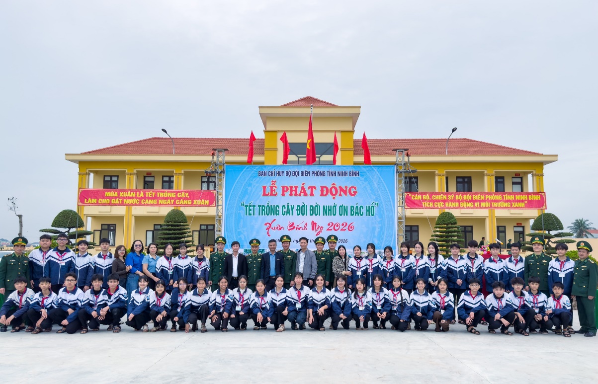 Thực hiện Công văn số 62/UBND-VP3, ngày 07/01/2026 của Ủy ban nhân dân tỉnh về việc phối hợp triển khai Chỉ thị về tổ chức “Tết trồng cây đời đời nhớ ơn Bác Hồ” nhân dịp Xuân Bính Ngọ và tăng cường công tác quản lý, bảo vệ, phát triển rừng năm 2026. Sáng 26/02 ban Chỉ huy BĐBP tỉnh kết hợp với các ban ngành, đoàn thể các xã Hải Tiến, Hải Quang; toàn thể cán bộ, chiến sĩ Đồn biên phòng Văn Lý, Ban giám hiệu, Giáo viên, Chi đoàn, học sinh trường THCS Hải Lý tổ chức Lễ phát động ra quân trồng cây đầu xuân tại Đồn Biên phòng Văn Lý và khu vực biên giới biển.